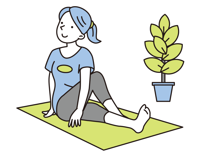- 1時間ごとに立ち上がり、腰や脚のストレッチを行う